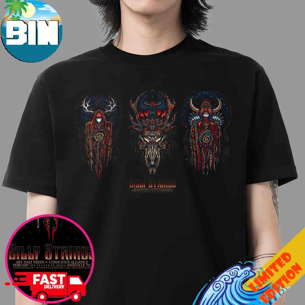 About Billy Strings Asheville All Date Landscape Poster On February 10-11-13-14 2026 Art By Jeff Wood T-Shirt By Binteez