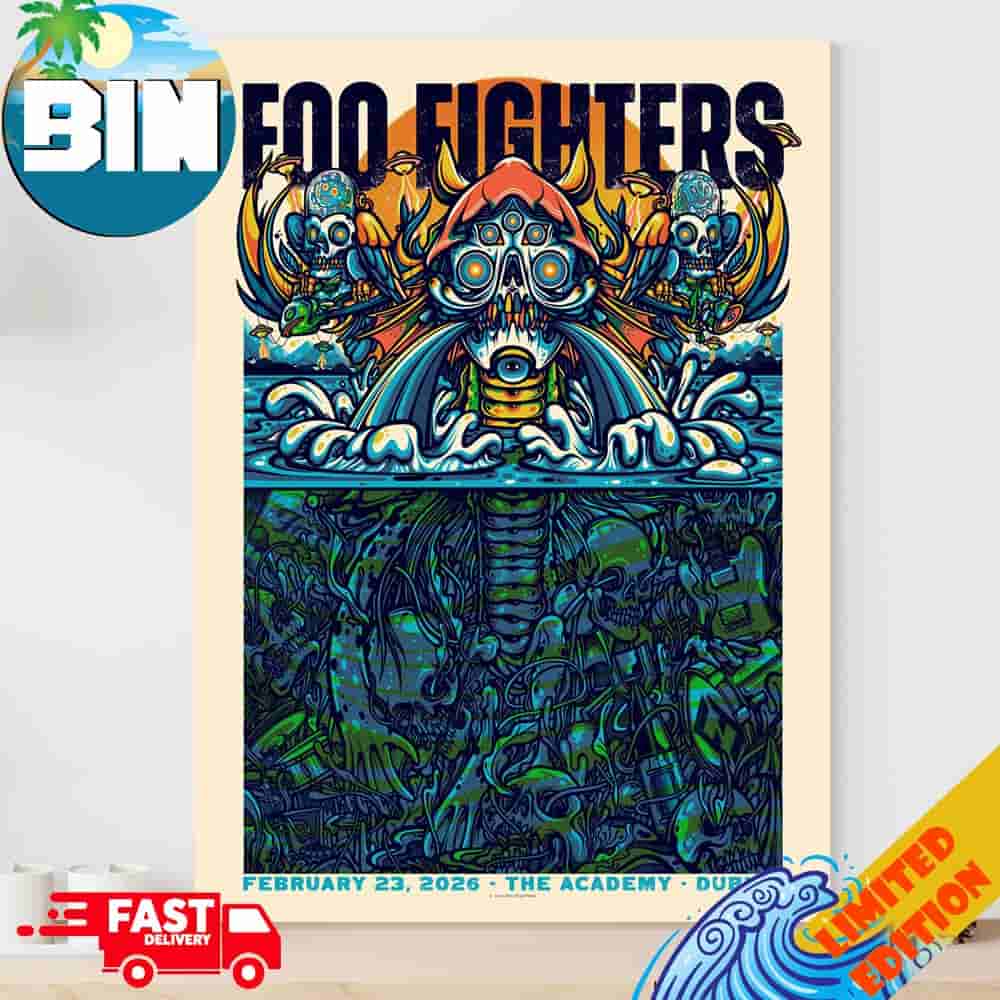 The Foo Fighters Dublin 2026 Official Poster For Show At The Academy On February 23 Poster Canvas is a commemorative music wall art print intended for fans and collectors of Foo Fighters concert memorabilia, presenting a design centered on a Dublin live performance reference dated February 23, 2026. Foo Fighters, the American rock band founded in 1994 by Dave Grohl following the dissolution of Nirvana, have maintained a long history of touring across Europe and Ireland, with Dublin frequently appearing on past tour itineraries at major venues and festivals. A poster canvas of this type typically features the band name as the dominant visual element alongside the event city and date, with typography inspired by modern rock tour graphics and contrasting colors that emphasize readability and visual impact. Standard Foo Fighters poster layouts often incorporate recognizable visual motifs such as bold lettering, distressed textures, or abstract graphic backgrounds that reflect the band’s alternative rock identity while clearly identifying Dublin as the geographic context. The Academy in Dublin is a recognized mid-capacity live music venue located on Abbey Street in the city center and has hosted numerous international rock and indie acts, making it a plausible setting for intimate club-scale performances compared with arena tours. As a Foo Fighters concert poster canvas, the item functions primarily as decorative rock band wall art suitable for home display, rehearsal studios, or music-themed interiors while also serving as a collectible record of a specific tour date reference connected with Dublin concert culture. Fans searching for Foo Fighters poster canvas prints, Dublin concert poster artwork, rock band memorabilia, or The Academy Dublin music posters may find this type of design appealing because it connects a globally recognized band with a well-known Irish venue. No verified official merchandise listing from the band’s authorized store or management confirms that a February 23, 2026 Foo Fighters concert at The Academy Dublin has been publicly announced, and there is no confirmed indication that this specific poster canvas edition is officially licensed merchandise, so it should be regarded as commemorative concert artwork unless obtained through recognized official retail channels.