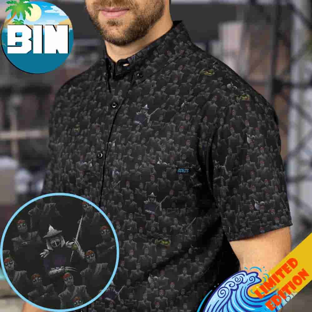 The Teenage Mutant Ninja Turtles Fear The Foot Hawaiian Shirt and Beach Short ensemble is a specialized two-piece apparel set designed for adult fans, dedicated collectors, and individuals looking for high-quality pop culture gifts rooted in the Nickelodeon media franchise. This coordinated outfit draws its primary creative inspiration from the Foot Clan, the ancient and formidable ninjutsu organization led by the Shredder, which has served as the primary antagonist to the four turtle brothers since their 1984 comic book debut. The product consists of a short-sleeved button-down shirt and matching shorts, featuring a striking all-over print that incorporates the iconic “Foot” emblem—a stylized red footprint—alongside images of Foot Soldiers and the Shredder. The color palette typically utilizes dark, brooding tones such as black, charcoal, and deep purple, contrasted against the vibrant red of the clan’s insignia to reflect the group’s clandestine nature within the shadows of New York City. As an officially licensed piece of merchandise through Paramount Global and Nickelodeon, the set adheres to specific brand standards regarding character proportions and the historically accurate depiction of the clan’s iconography. The apparel is generally constructed from a lightweight, breathable polyester or rayon blend, making it an ideal choice for summer wear, beach outings, or casual social activities. From a narrative perspective, the Foot Clan is inextricably linked to the urban landscape of Manhattan, operating from secret dojos and high-tech headquarters throughout the various boroughs. This outfit is a popular choice for fans attending major industry events such as the New York Comic Con at the Javits Center or San Diego Comic-Con, where showcasing unique franchise-themed fashion is a mainstay of the fan experience. Beyond convention halls, the set offers significant value as a functional vacation outfit for coastal destinations in Florida or California, while also serving as a unique collector’s item for those who appreciate the martial arts lore of the TMNT universe. The “Fear The Foot” theme provides a more mature, villain-centric alternative to standard character merchandise, appealing to long-time supporters of the series who value the complex rivalry between the turtles and their rivals. By combining officially licensed TMNT imagery with the relaxed silhouette of traditional tropical wear, the product meets the demand for authentic Teenage Mutant Ninja Turtles beachwear that transitions seamlessly from casual summer outings to dedicated fan gatherings worldwide.